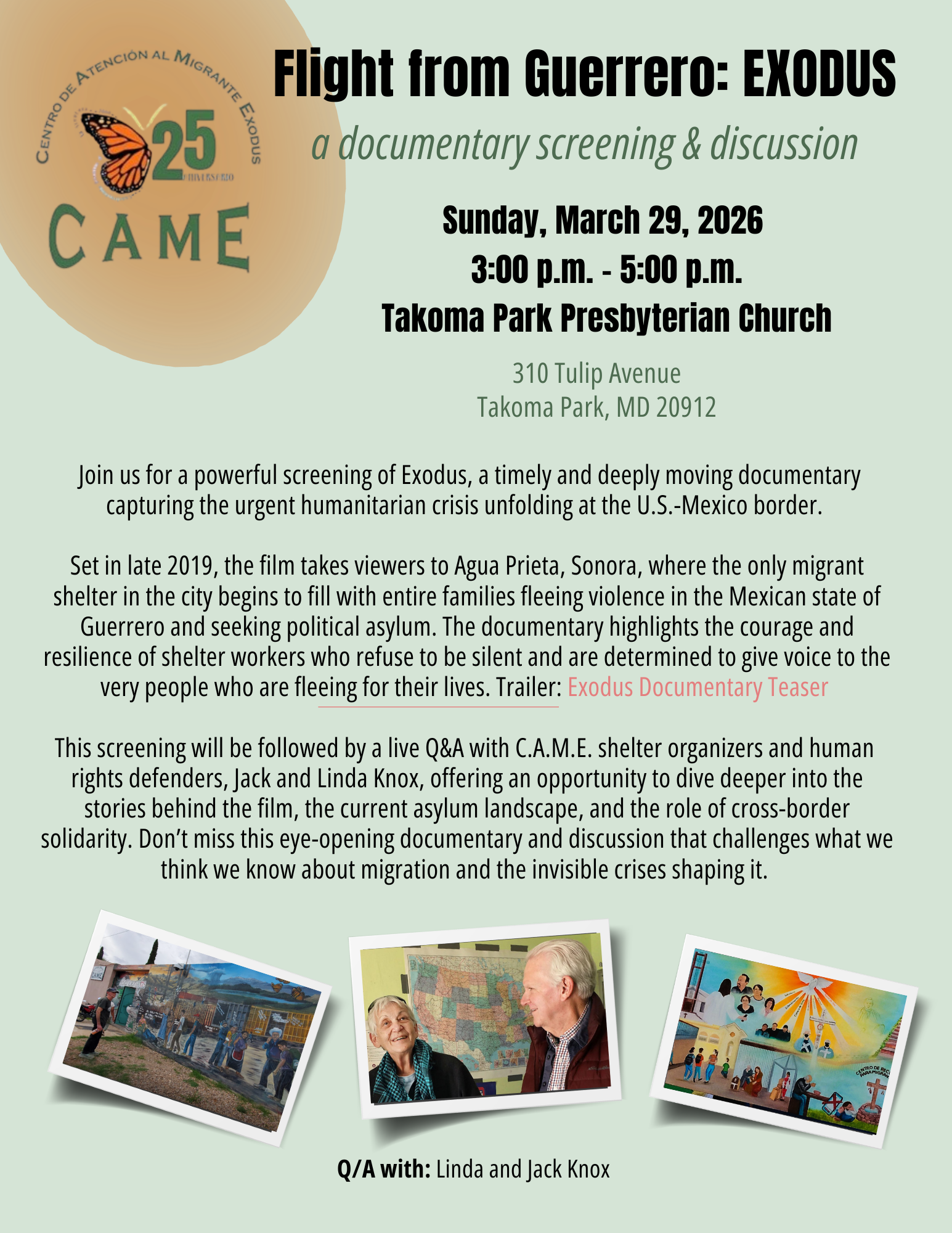 We hope you'll be able to attend this free screening of Exodus, which is open to all. Please share widely in your networks. If you're unable to come but would like to see the film, go to bit.ly/exodusfilmdmv for a listing of other showings
